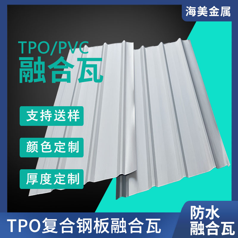 TPO/PVC鋼塑復合防水瓦以鋼板為基板,表面貼覆具有防水防腐功能的TPO/PVC卷材(熱塑性聚烯烴類防水卷材),是一款防水防腐屋面建筑材料。TPO/PVC鋼塑復合防水瓦主要特點就是在各類環(huán)境下不易生銹不易漏水,使用熱風焊接進行相連,覆蓋全部裸露的縫隙,在使用過程中可以達到蓄水不滲透的效果,防水效果好,同時還有較好的抗風揭性能和耐老化性