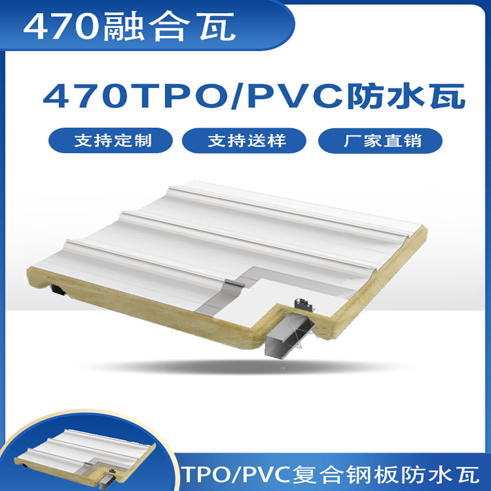 TPO/PVC鋼塑復合防水瓦以鋼板為基板,表面貼覆具有防水防腐功能的TPO/PVC卷材(熱塑性聚烯烴類防水卷材),是一款防水防腐屋面建筑材料。TPO/PVC鋼塑復合防水瓦主要特點就是在各類環境下不易生銹不易漏水,使用熱風焊接進行相連,覆蓋全部裸露的縫隙,在使用過程中可以達到蓄水不滲透的效果,防水效果好,同時還有較好的抗風揭性能和耐老化性