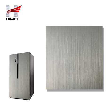 家電用覆膜鋼板,就是鋼板的基材上面覆了一層PET膜/PVC膜,然后通過覆合貼覆而成,主要應用在各類家電外殼裝飾上,例如冰箱、洗衣機、電飯煲等外殼部件。覆膜是一種物理工藝,一層膜一層鋼板經過高溫高壓壓合而成。