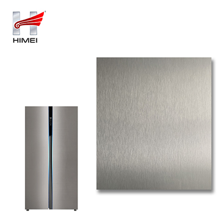 家電用覆膜鋼板,就是鋼板的基材上面覆了一層PET膜/PVC膜,然后通過覆合貼覆而成,主要應用在各類家電外殼裝飾上,例如冰箱、洗衣機、電飯煲等外殼部件。覆膜是一種物理工藝,一層膜一層鋼板經過高溫高壓壓合而成。