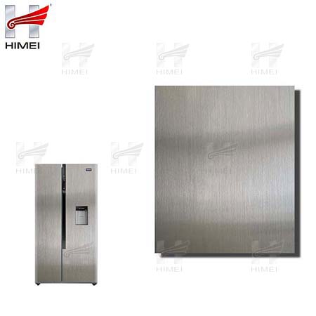 家電用覆膜鋼板,就是鋼板的基材上面覆了一層PET膜/PVC膜,然后通過(guò)覆合貼覆而成,主要應(yīng)用在各類家電外殼裝飾上,例如冰箱、洗衣機(jī)、電飯煲等外殼部件。覆膜是一種物理工藝,一層膜一層鋼板經(jīng)過(guò)高溫高壓壓合而成。