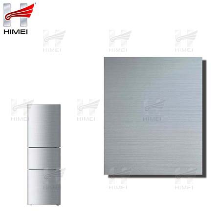 家電用覆膜鋼板,就是鋼板的基材上面覆了一層PET膜/PVC膜,然后通過覆合貼覆而成,主要應用在各類家電外殼裝飾上,例如冰箱、洗衣機、電飯煲等外殼部件。覆膜是一種物理工藝,一層膜一層鋼板經過高溫高壓壓合而成。